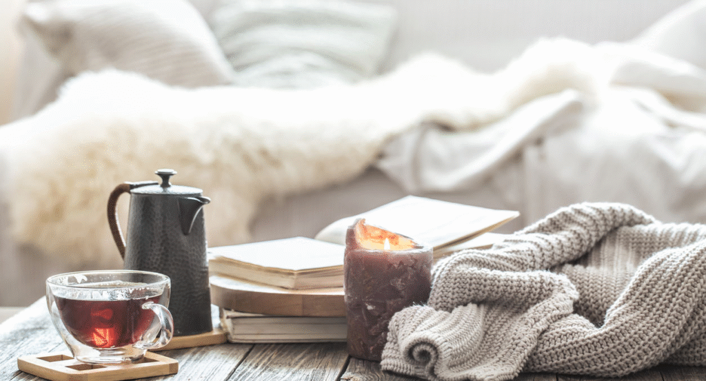 Your environment plays a huge role in feeling Hygge. I started by decluttering my space and adding soft blankets, warm lighting, and scented candles. It doesn’t have to be anything fancy—just things that make you feel comfortable and relaxed.