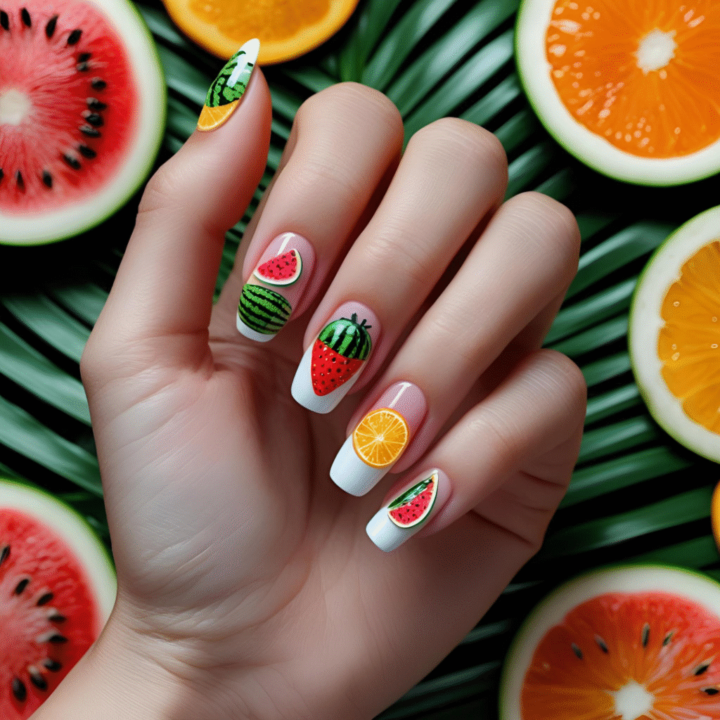 - Accessories: Match your manicure with fruit-shaped earrings or bright summer bags.